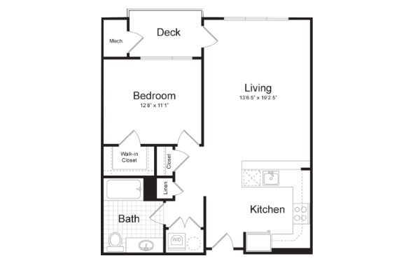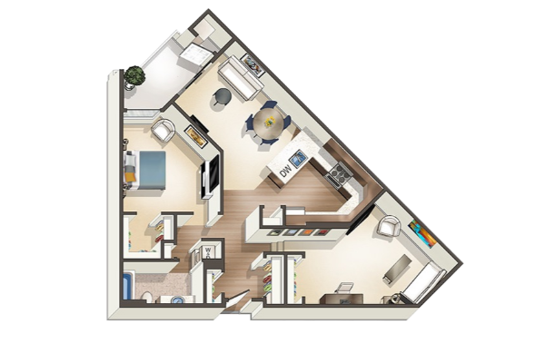 752 Sq. Ft. 1 BD / 1 BA